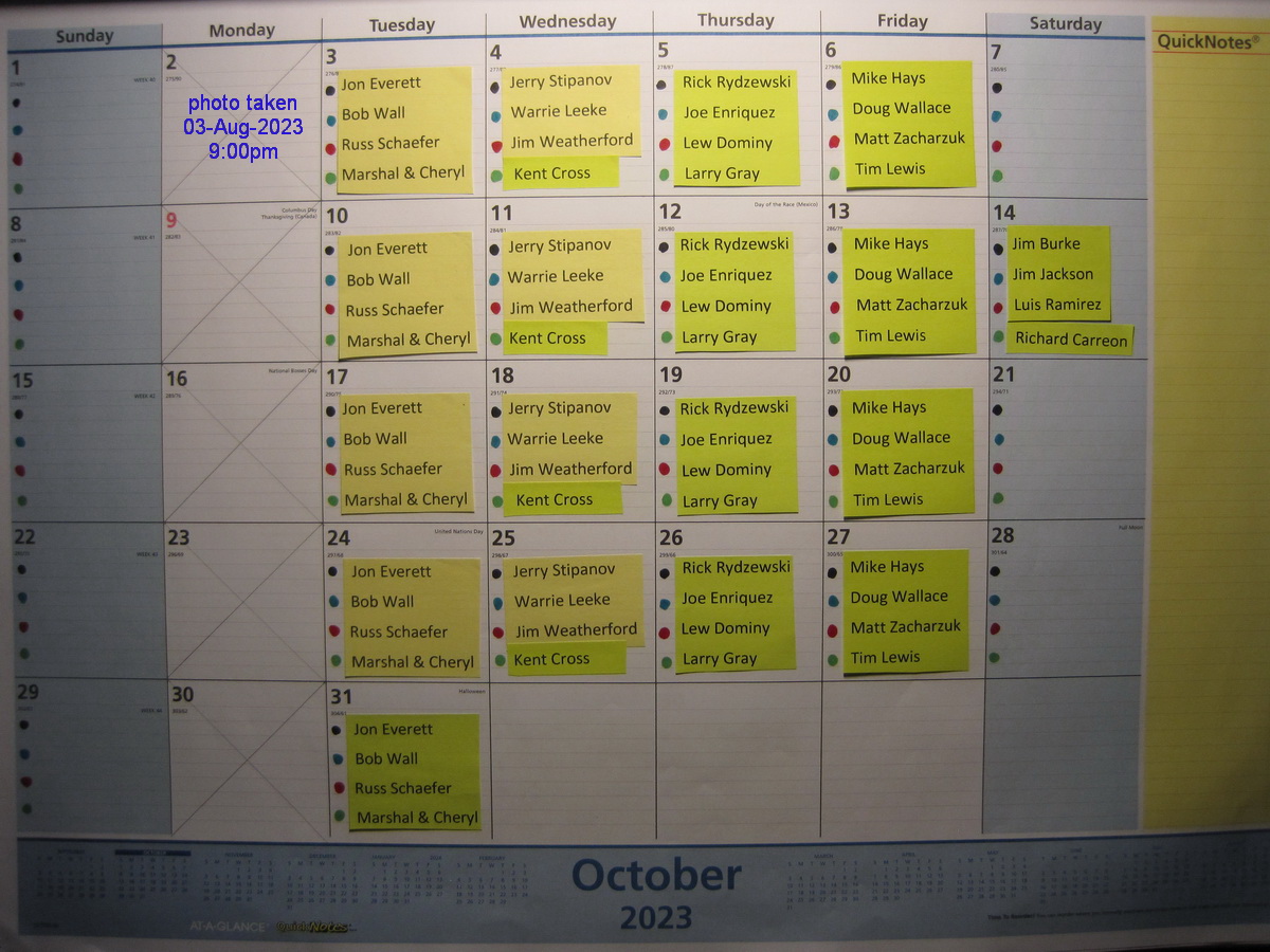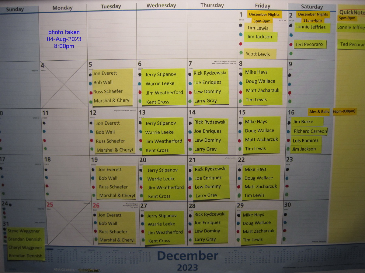 These photos were taken of the Layout calendar pages on the dates specified in the photos. To sign up to run during the months following the re-opening, email Roger LaFrance at admin@sd3r.org. NOTE: The Museum is now open to the public Tuesday through Sunday.